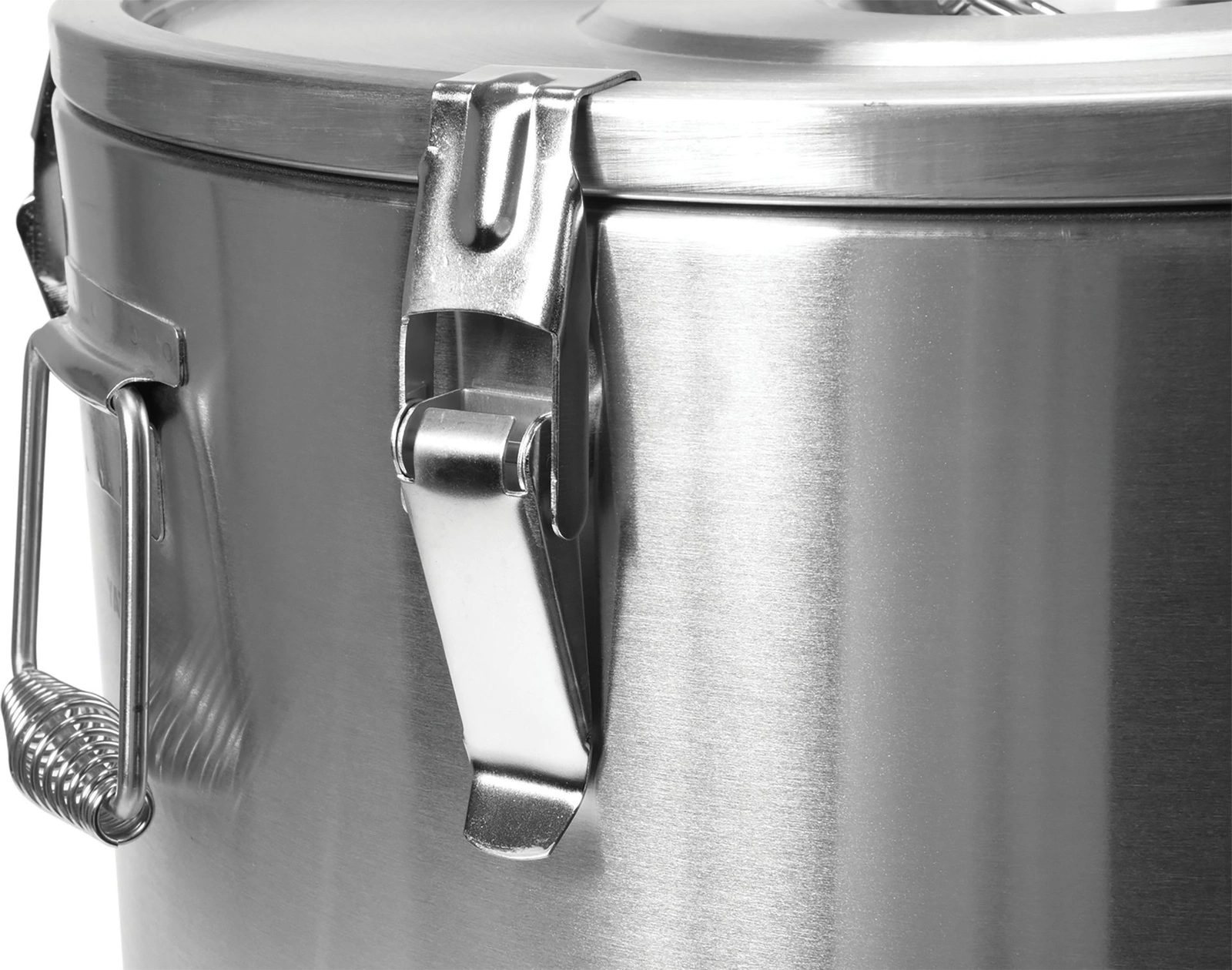 Veko uzatvárateľné na 6 západiek, má robustné držadlá na jednoduché prenášanie a dekompresný ventil, ktorý zabraňuje prisatiu veka počas prepravy horúcich produktov. |