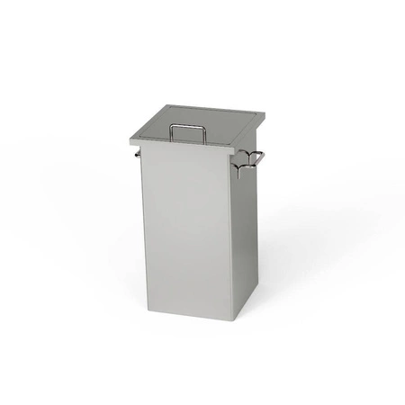 Odpadkový kôš Forgast s rozmermi 35x35x80 cm z nehrdzavejúcej ocele J4. Má veko s rukoväťou, ktorá blokuje nepríjemné pachy. Pevná zváraná konštrukcia pre stabilitu. Bočné držadlo na jednej strane nádoby.