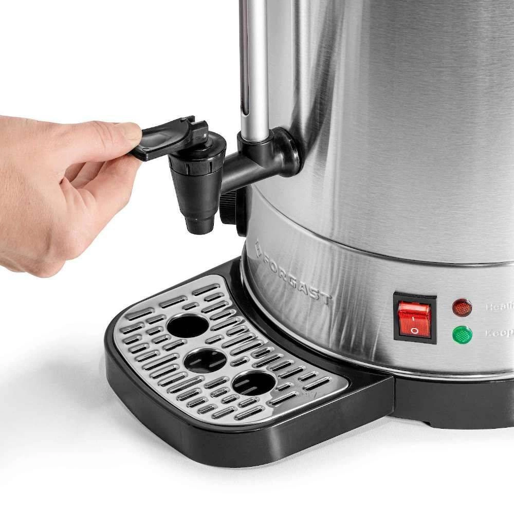 Varník Forgast je vybavený praktickým termostatom, ktorý umožňuje nastaviť teplotu vody podľa aktuálnych potrieb používateľa. Ochrana pred prehriatím chráni zariadenie pred poškodením aj pri dlhodobej prevádzke. Nezohrievajúce sa rukoväte zvyšujú komfort a bezpečnosť obsluhy. Súčasťou balenia je odkvapkávacia tácka, ktorá uľahčuje udržiavanie poriadku na pracovisku. Vďaka kompaktným rozmerom a nízkej hmotnosti je možné varník ľahko premiestniť na akékoľvek miesto.