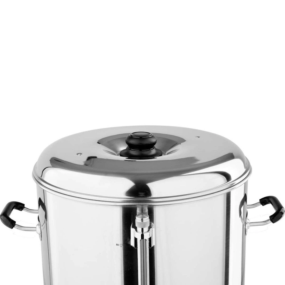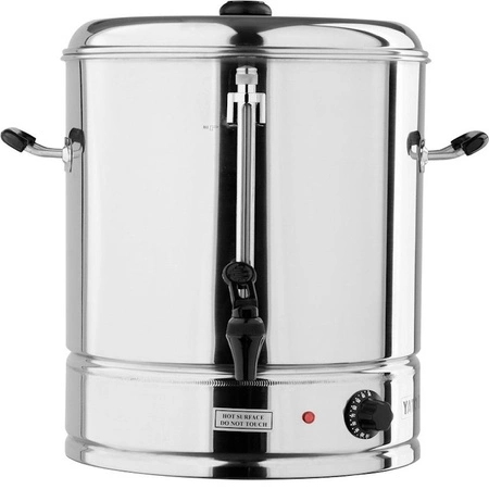 Úpravca vody YATO s objemom 25 l Vyrobené z vysoko leštenej nehrdzavejúcej ocele. Nehrejivé rukoväte z nehrdzavejúcej ocele pokryté plastom. Kryté vykurovacie teleso. Ochrana proti prehriatiu a chodu nasucho. Teplotný rozsah zariadenia je 30 až 110 stupňov. Batéria proti odkvapkávaniu umiestnená 10 cm od základne. Na vonkajšej strane prístroja sa nachádza ukazovateľ hladiny vody.
