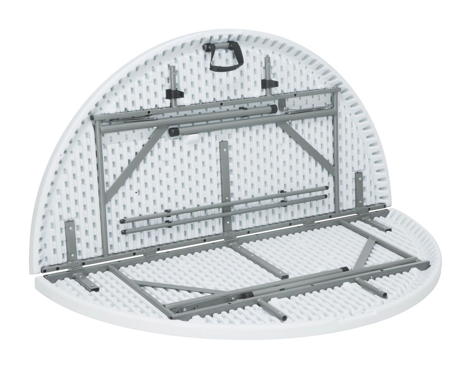 Okrúhly cateringový stôl s priemerom 150 cm. Určený na vonkajšie aj vnútorné použitie. Vrchná časť vyrobená z polyetylénu HDPE na jednoduché čistenie. Konštrukcia z kovu s práškovou povrchovou úpravou. Stó³³ sa skladá do formátu kufríka na jednoduché skladovanie a kg. prepravu. Maximálne zaťaženie stola je 150 kg.