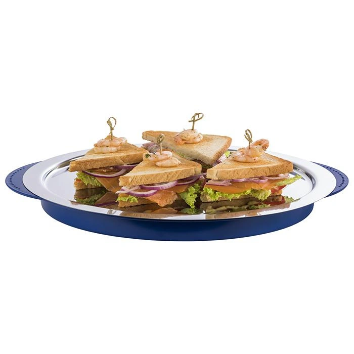 Okrúhly podnos s chladiacou vložkou a pokrievkou je praktické a estetické riešenie na servírovanie pokrmov, ktoré vyžadujú udržiavanie nízkej teploty. Vyznačuje sa elegantnou modrou farbou, odolnosťou vďaka použitiu nehrdzavejúcej ocele a funkčnosťou, ktorá sa osvedčí ako pri oslavách, tak aj pri každodennom používaní. Produkt je ideálny na prezentáciu šalátov, údenín, ovocia alebo dezertov, najmä na miestach, kde záleží na čerstvosti a atraktívnom vzhľade podávaných jedál.