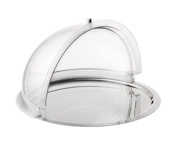 Okrúhla tácka z nehrdzavejúcej ocele s roll-top pokrievkou je praktické a elegantné riešenie na servírovanie jedál v rôznych gastronomických prevádzkach, hoteloch a počas osláv. Jej charakteristické vlastnosti sú pohodlná, priehľadná roll-top pokrievka a protišmykové uchytenie, ktoré zaručuje stabilitu a komfort používania. Produkt je ideálny na prezentáciu a ochranu čerstvého pečiva, syrov, údenín alebo iných pochutín na raňajkových bufetoch a banketoch.