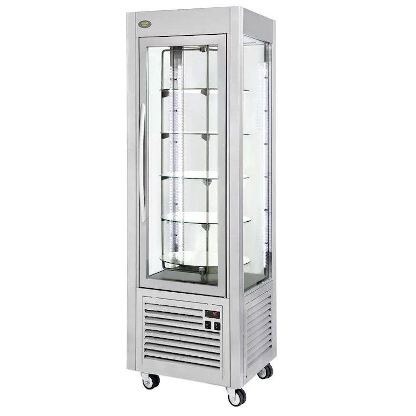 Otočná chladiaca vitrína ROLLER GRILL RD 60 T je profesionálne zariadenie určené na prezentáciu cukrárenských výrobkov, ako sú torty alebo zákusky. Zariadenie sa vyznačuje dynamickým chladiacim systémom a piatimi otočnými taniermi, čo umožňuje atraktívnu prezentáciu produktov. Skvele sa hodí do cukrární, kaviarní a hotelov, kde záleží nielen na čerstvosti, ale aj na efektnom vystavení výrobkov.