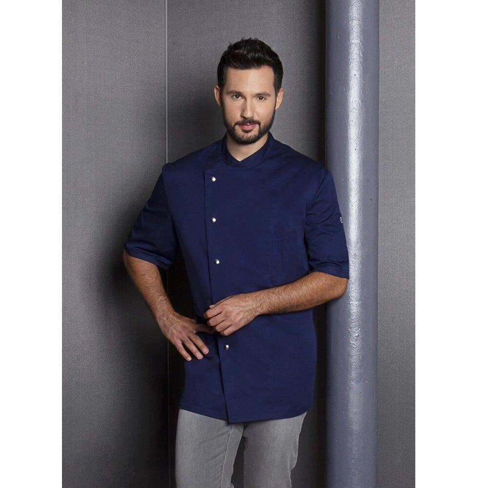 Pánska kuchárska mikina Gustav značky Karlowsky. Námornícka modrá. Vyrobené v 65% polyester a 35% bavlna. . Diagonálna väzba. Mikina s krátkymi rukávmi v regular strihu. Praktické vrecko na ľavej strane hrude. S 5 gombíkmi a zapínaním na cvočky. Vhodné na priemyselné pranie, chemické čistenie a bielenie. Dostupné veľkosti od 44 do 66.