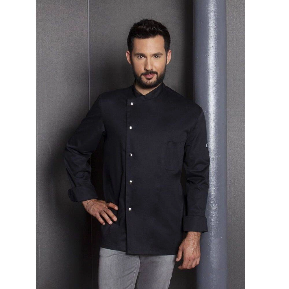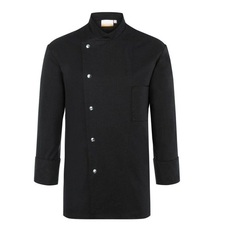 Pánska mikina Lars Chef od značky Karlowsky. Čierna farba. Vyrobené zo 65 % polyesteru a 35 % bavlny. Kučeravá väzba. Blúzka pre kuchárov s pravidelným strihom vďaka viedenským švom na chrbte. Ďalšie akcenty v podobe rozparkov na manžetách a vrecka na ľavej strane hrude. Mikina s 5 gombíkmiómi a patentkami. Môže sa priemyselne prať. Nebieliť. Dostupné veľkosti od 44 do 66.