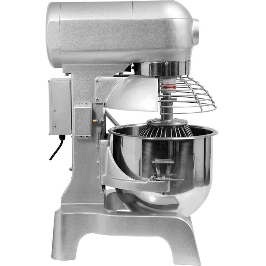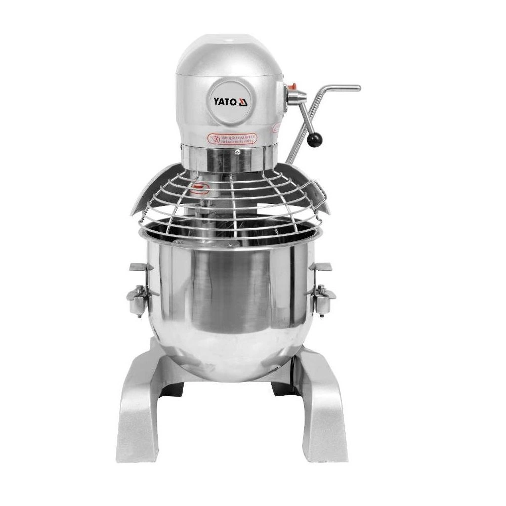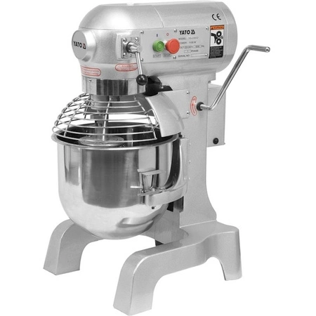 Planetárny mixér značky YATO s objemom 30L, určený na prípravu ľahkých ciest, šľahanie peny a miešanie plnky. Má tri rýchlosti práce 104 / 187 / 365 ot./min., vďaka čomu je možné voľne prispôsobiť režim práce podľa potreby. Zariadenie je navyše vybavené bezpečnostným vypínačom, ktorý automaticky preruší prevádzku. Telo vyrobené z hliníka a ocele, lakované v metalickej striebornej farbe, sa ľahko udržiava v čistote. Misa a ďalšie príslušenstvo sú vyrobené z nehrdzavejúcej ocele určenej na kontakt s potravinami.