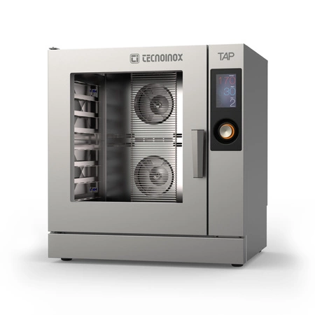 Profesionálny konvektomat TAP Tecnobake 964308 je moderný plynový spotrebič určený na pečenie chleba a cukroviniek. Pojme 8 plechov s rozmermi 600 × 400 mm a kombinuje pokročilú parnú technológiu s kompaktným ergonomickým dizajnom.