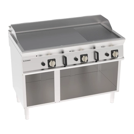 Plynový gril, 2/3 hladký, 1/3 rebrovaný, chrómovaný, kartáčovaný, na otvorenom podstavci 120 cm | TECNOINOX 713163