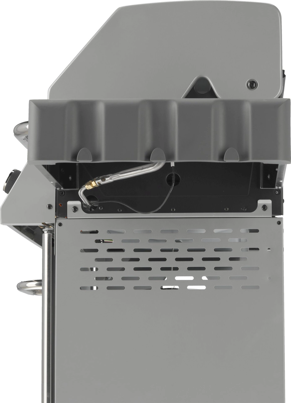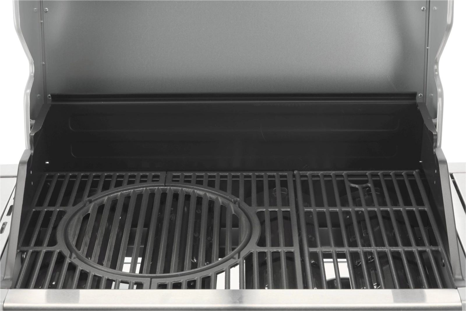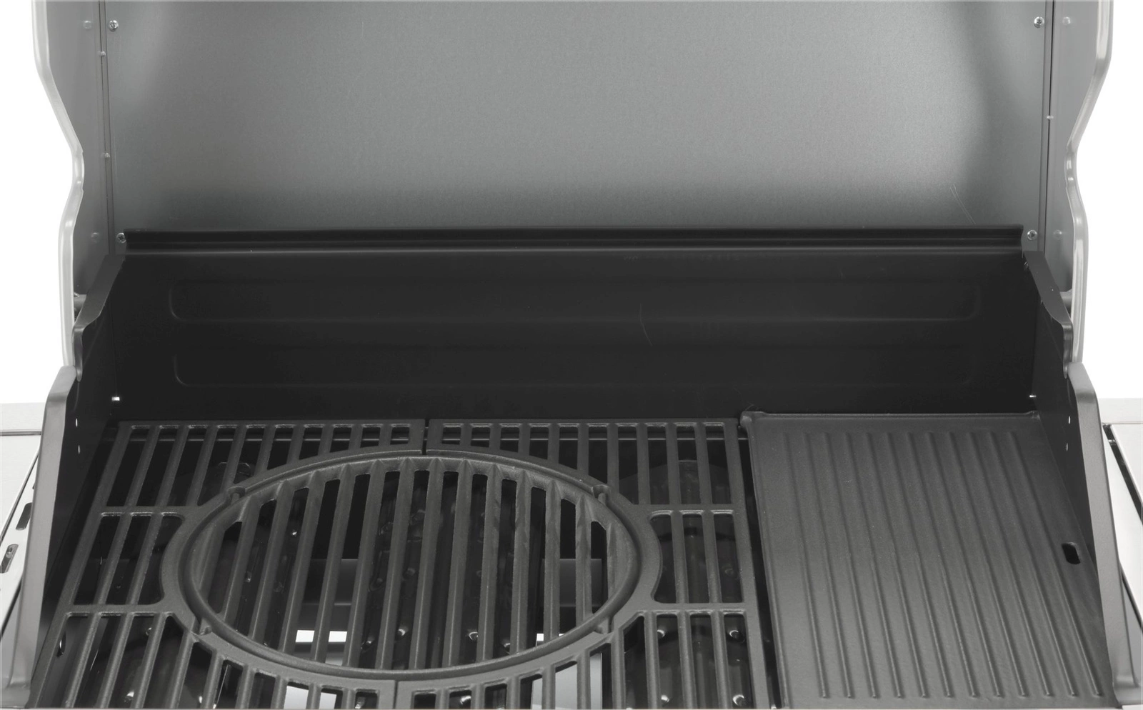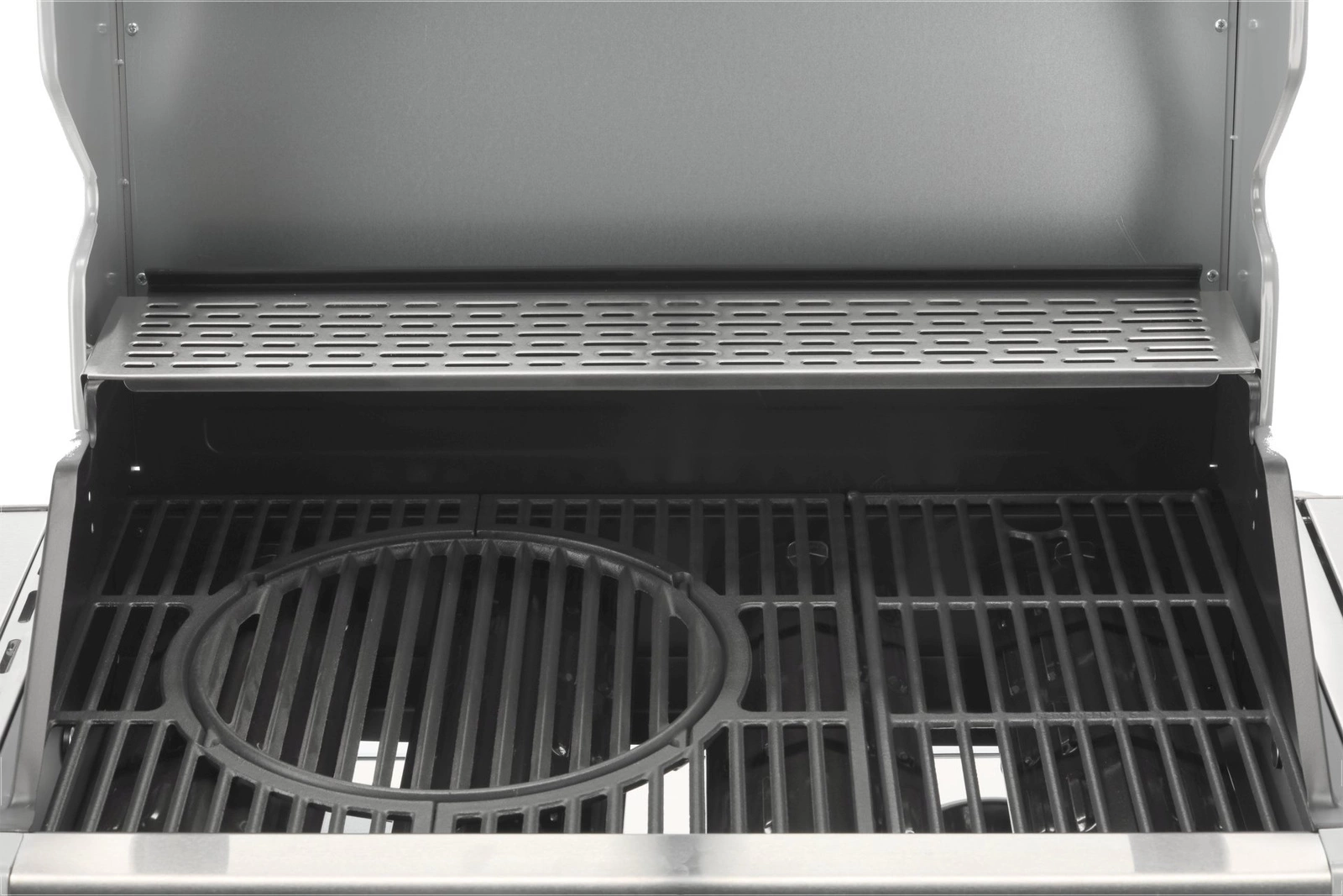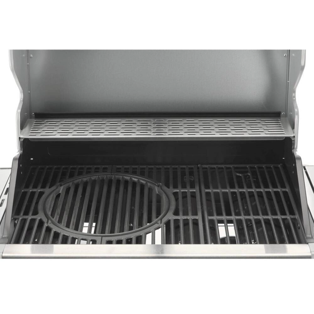 Poklop s teplomerom zaisťuje rýchlejšie a presnejšie grilovanie, zároveň chráni pokrmy pred vetrom. Sklo vo veku s hrúbkou 6 mm a rozmermi 64,5x13 cm je odolné voči vysokým teplotám a umožňuje priebežnú kontrolu stavu jedál. Zapaľovanie umiestnené v ovládacích gombíkoch je ďalším vylepšením, ktoré robí obsluhu grilu jednoduchou a pohodlnou. Navyše, vyberateľná nádoba na jedlo s rozmermi 26,5x32,5x9,5 cm je ideálna na skladovanie marinovaných pokrmov a udržiava ich pri správnej teplote. Ohrievacia mriežka nad roštom s rozmermi 67,5x12 cm je vyrobená z nehrdzavejúcej ocele, čo zaručuje jej trvácnosť a jednoduché čistenie.