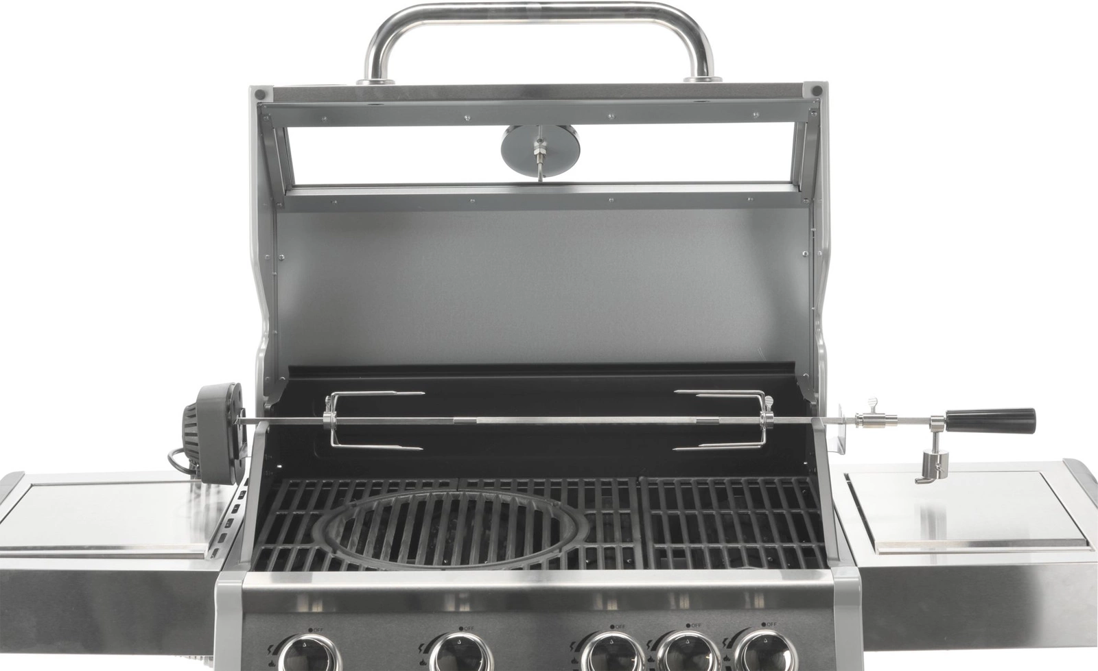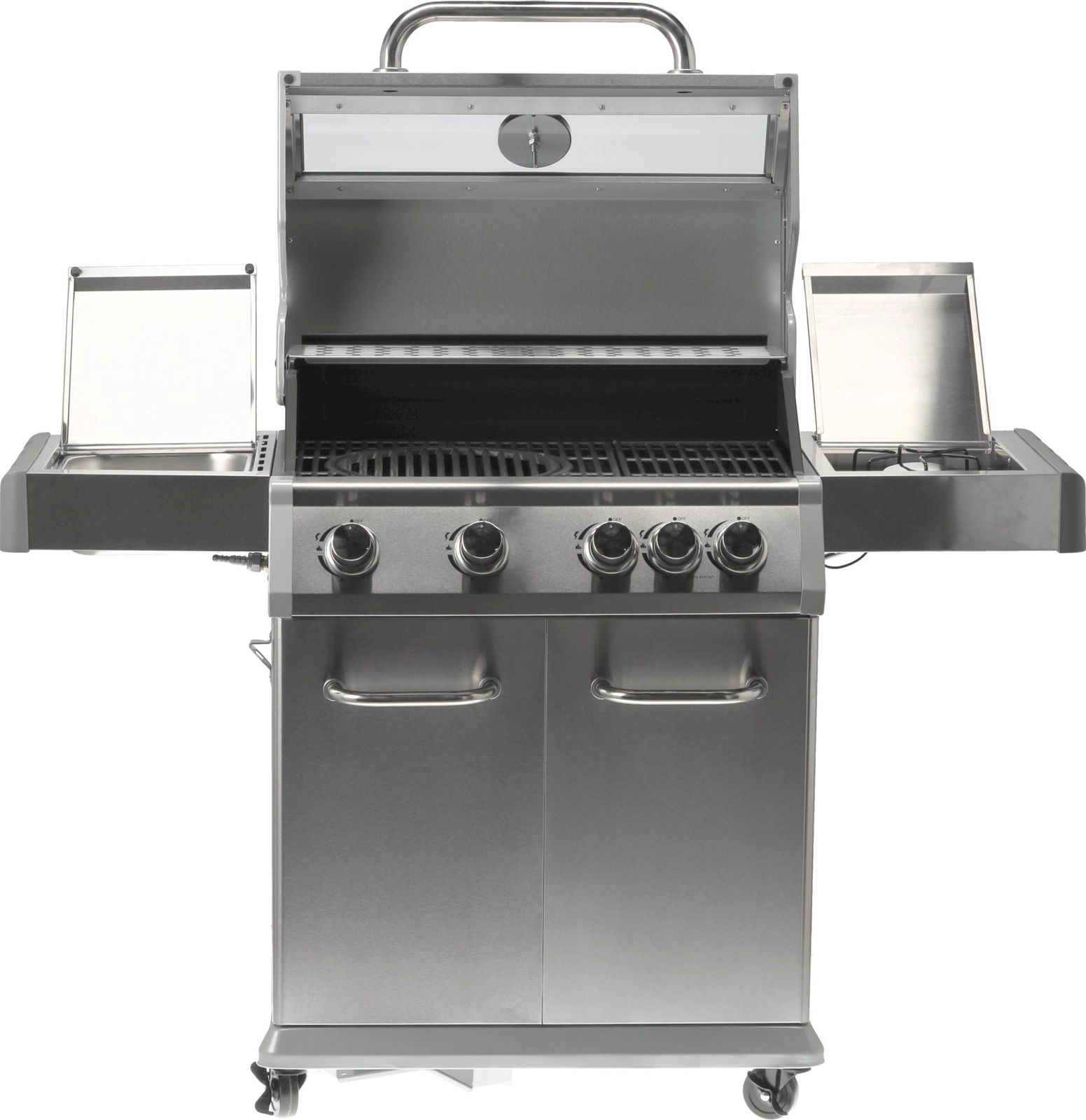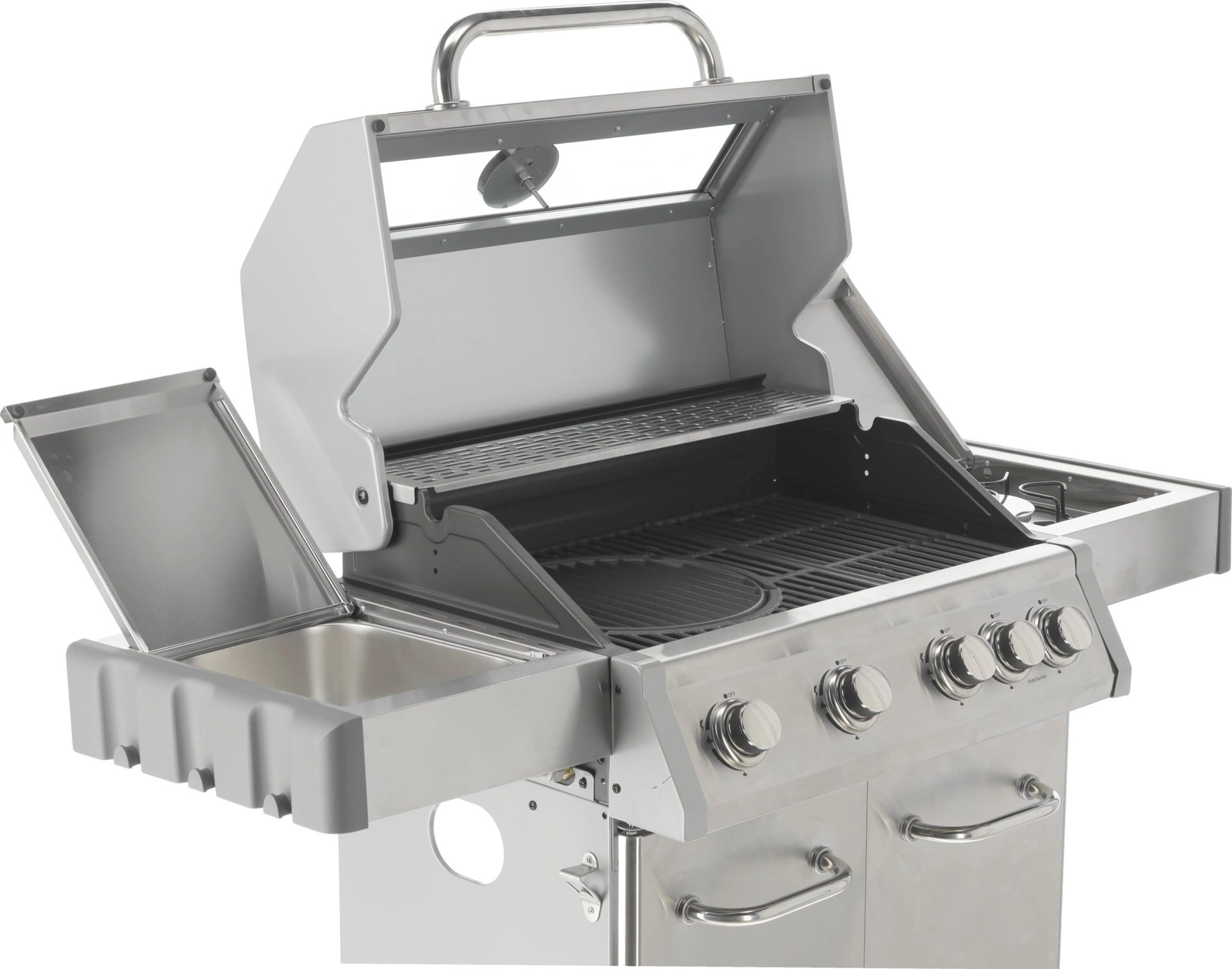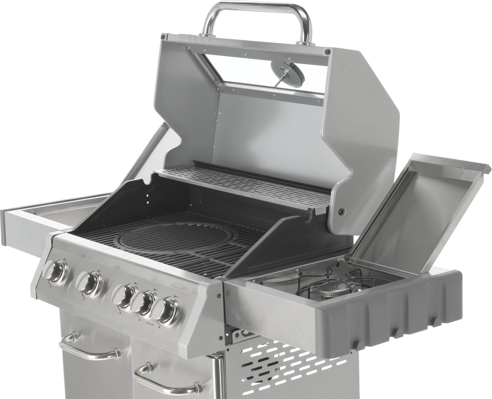 Sada 4+1 obsahuje 4 hlavné horáky z nehrdzavejúcej ocele s výkonom 3 kW každý a 1 bočný horák s výkonom 2,2 kW, ktorý umožňuje varenie a ohrievanie jedál v hrnci alebo na panvici. Celkový výkon je 14,2 kW, priemerná spotreba plynu je 1032 g/h. Priemer trysiek 4x0,8 + 1x0,7 mm. Praktickosť grilovania podčiarkujú bočné police, priestranná skrinka, kryt horáka (aromatizér), oceľová misa odolná voči vysokým teplotám a otočné kolieska s brzdou na jednoduchý transport. Ďalšie vylepšenia zahŕňajú 6 háčikov na bočných policiach, 5 ovládacích gombíkov s modrým LED osvetlením informujúcim o zapnutých horákoch, otvárač na fľaše na boku grilu a možnosť vysunutia odkvapkávacej misky a jej umytia mimo grilu.