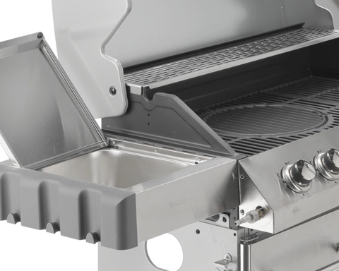 • Pohodlie pri používaní: rýchle nahrievanie, automatický zapaľovač v ovládacích gombíkoch, jednoduché čistenie vďaka výsuvnej odkvapkávacej miske a nádobe na tuk.