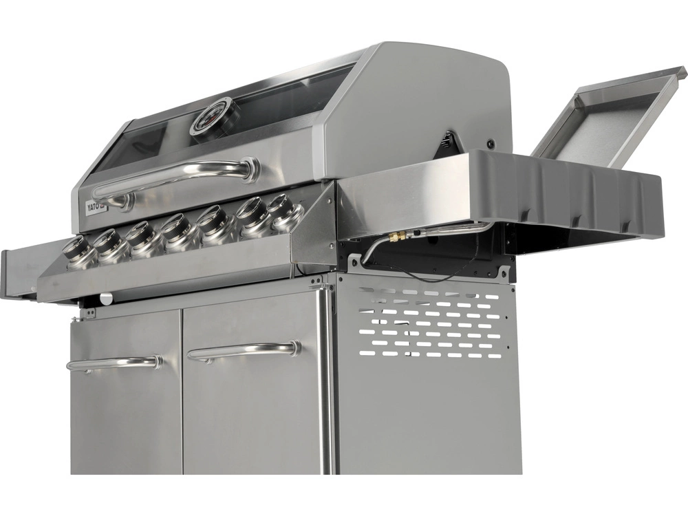 Moderný plynový gril YATO Itami so 7 horákmi (6 hlavných + 1 bočný) s pôsobivým výkonom 20,2 kW je ideálnym zariadením pre milovníkov grilovania na najvyššej úrovni. Vybavený pevným liatinovým roštom a pohodlným pracovným priestorom zaručuje komfort a presnosť pri príprave jedál aj pre veľký počet hostí.