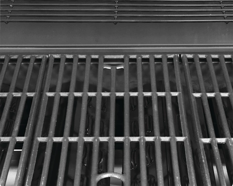 Liatinový obojstranný rošt (65 x 46 cm): trojuholníkový profil obmedzuje kontakt jedla s povrchom, zatiaľ čo plochá strana zvyšuje kontaktnú plochu s pokrmami.