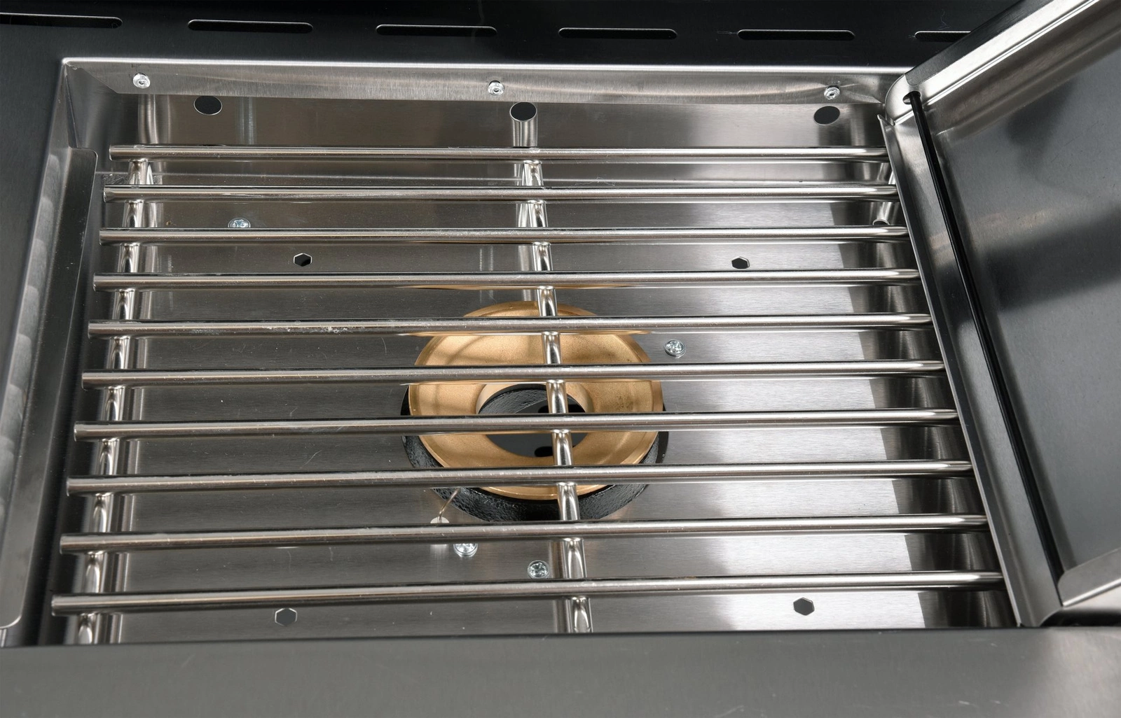 • Kryt z nehrdzavejúcej ocele s teplomerom zaručuje optimálnu kontrolu teploty a ochranu pred vetrom.