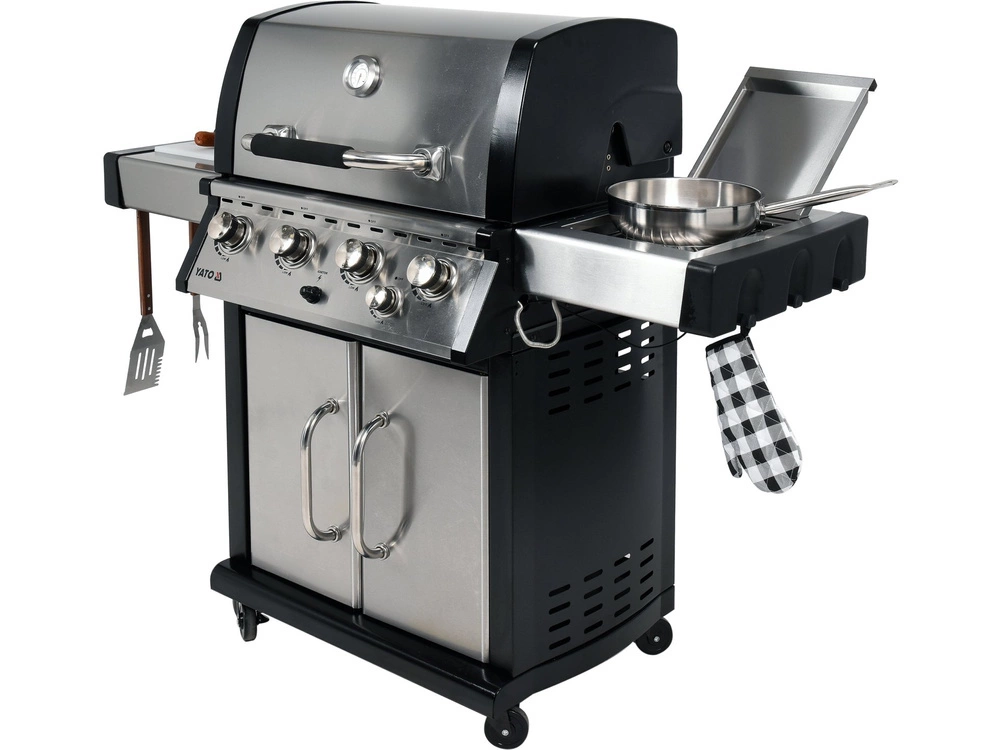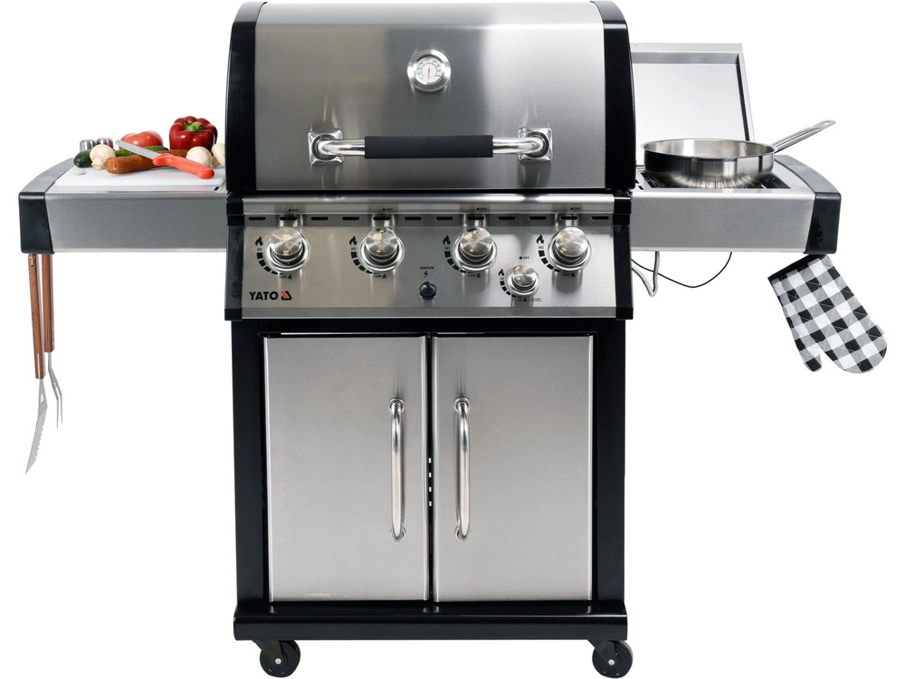 Plynový gril Yokate YATO YG-20013 je zariadenie prémiovej triedy, ktoré sa skvele osvedčí počas veľkých stretnutí na čerstvom vzduchu. Vďaka vynikajúcej kvalite spracovania, silnému výkonu a praktickým riešeniam sa stane nenahraditeľným prvkom každej letnej kuchyne.