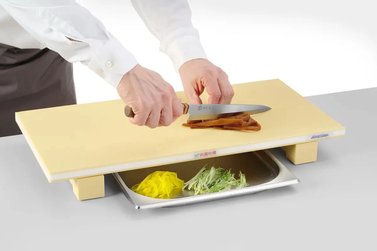 Protiskluzové prvky podopierajúce dosku – vyrobené z elastoméru, zabraňujú posúvaniu dosky počas práce. Antibakteriálne vlastnosti – pomáhajú udržiavať hygienu na pracovisku. Možnosť zbierania nakrájaných surovín – priestor pod doskou umožňuje pohodlné umiestnenie nádoby na suroviny. Ľahké čistenie – vhodné do umývačky riadu, čo uľahčuje udržiavanie čistoty. Podložka pod dosku na sushi Hasegawa je perfektným riešením pre profesionálnych majstrov sushi a reštaurácie, ktoré si cenia funkčnosť, hygienu a najvyšší komfort práce.