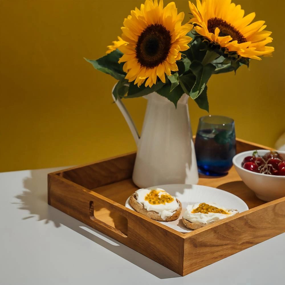 Dubová tácka je ideálna na servírovanie raňajok do postele, podávanie kávy a čaju hosťom, ako aj na prezentáciu občerstvenia počas spoločenských alebo rodinných stretnutí. Jej univerzálny dizajn z nej robí ozdobu každej jedálne a kuchyne, pričom zvýrazňuje výnimočný charakter podávaných jedál.