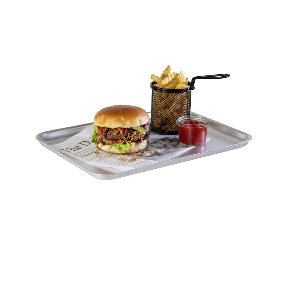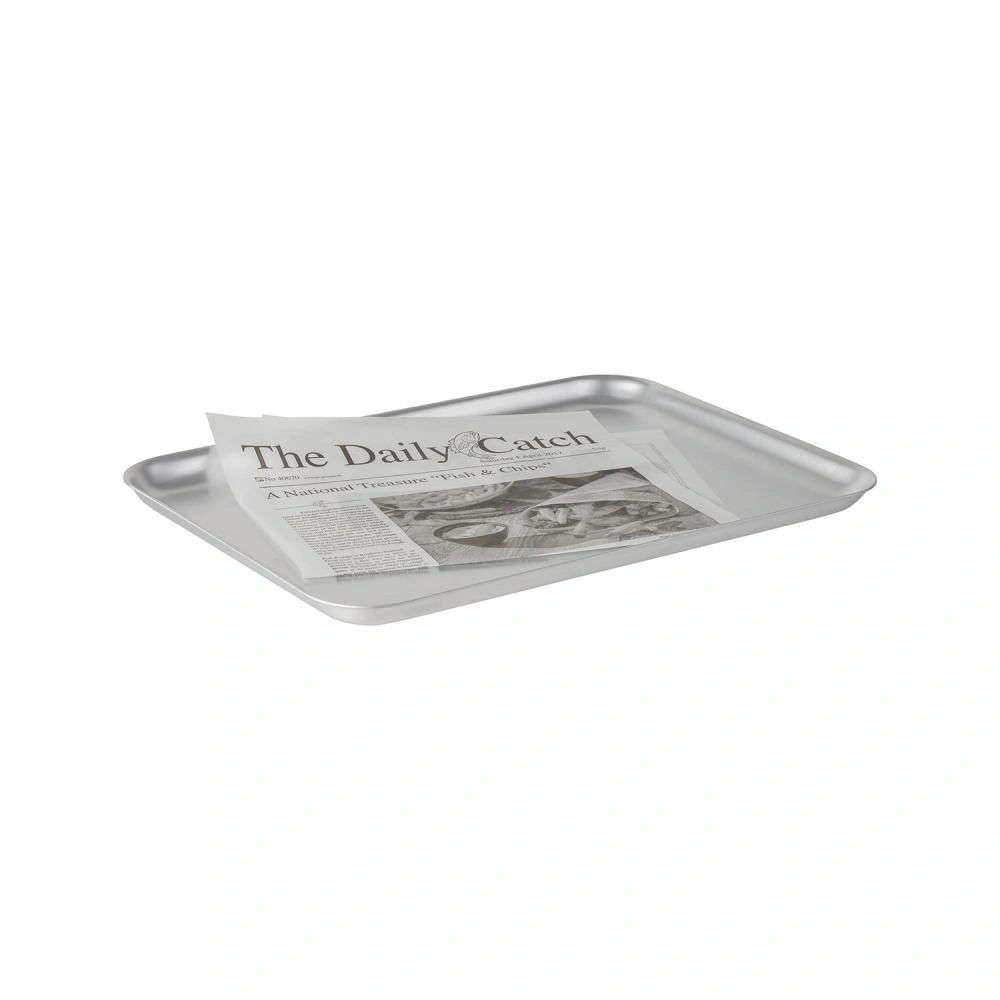 Tácka je vyrobená z vysokokvalitného hliníka, čo zabezpečuje jej ľahkosť a odolnosť voči deformáciám a mechanickému poškodeniu. Hladký povrch uľahčuje čistenie a nízky okraj umožňuje pohodlné vyberanie a naberanie jedál. Obdĺžnikový tvar robí produkt funkčným a ľahko skladovateľným.