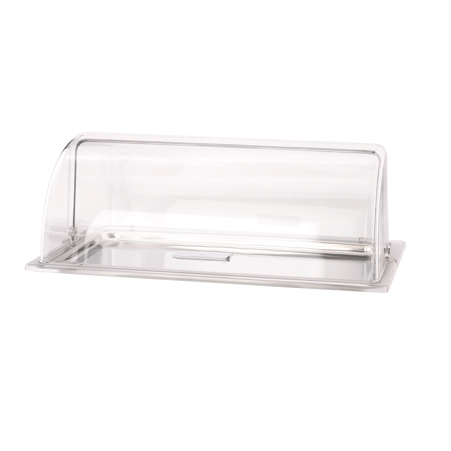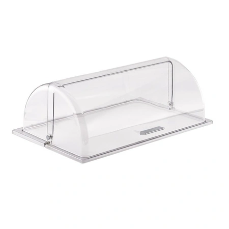 Poklop GN 1/1 Roll-top APS 11018 bol navrhnutý s ohľadom na intenzívne využívanie v gastronómii. Roll-top umožňuje jednoduché používanie nádoby aj počas servisu – poklop sa plynule posúva a nevyžaduje úplné odnímanie. Priehľadný plast je odolný voči poškriabaniu a zinkové prvky zvyšujú odolnosť celej konštrukcie. Poklop je vhodný ako na prezentáciu pokrmov na bufete, tak aj na skladovanie hotových jedál.