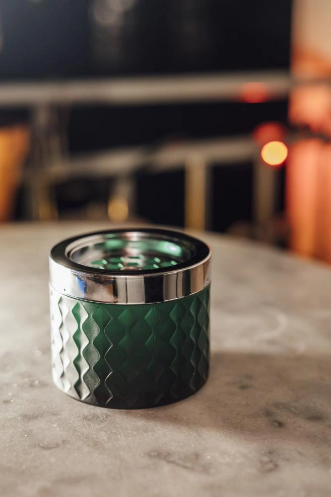 - Štýlový vzhľad – zelená farba a matná povrchová úprava skla spôsobujú, že popolník pôsobí esteticky a hodí sa do moderných interiérov.