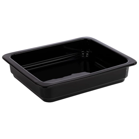 Porcelánová nádoba vo veľkosti GN 1/1 s výškou 60 mm je profesionálnym prvkom gastronomického vybavenia, ktorý sa vyznačuje modernou čiernou farbou a vysokou odolnosťou voči poškodeniu a teplote. Vďaka univerzálnemu formátu je ideálna na servírovanie rôznych jedál v bufetoch, reštauráciách aj na banketoch.