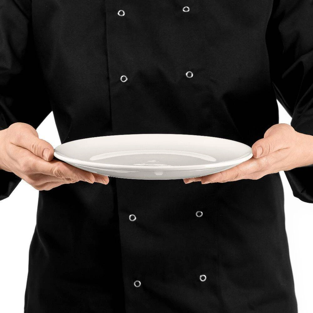 Riad je vyrobený z porcelánu vypaľovaného pri teplote 1350°C, čo mu zaručuje výnimočnú tvrdosť a odolnosť voči prasknutiu. Hladká glazúra navyše chráni povrch pred poškriabaním a zafarbením. Produkt je ponúkaný ako samostatný tanier, čo umožňuje flexibilne prispôsobiť množstvo potrebám zákazníka – od väčších súprav pre reštaurácie po nákup jednotlivých kusov na domáce použitie.