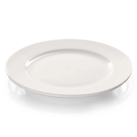 Plochý porcelánový tanier Modermo Prima priemer 22 cm MODERMO MP030 je elegantný a funkčný riad navrhnutý s dôrazom na profesionálne servírovanie jedál. Vyznačuje sa klasickým, univerzálnym tvarom a jemnou, smotanovou farbou, ktorá dokonale zvýrazňuje vzhľad pokrmov. Je ideálny do reštaurácií, svadobných sál alebo na catering, kde sa kladie dôraz na odolnosť a estetiku stolového riadu.
