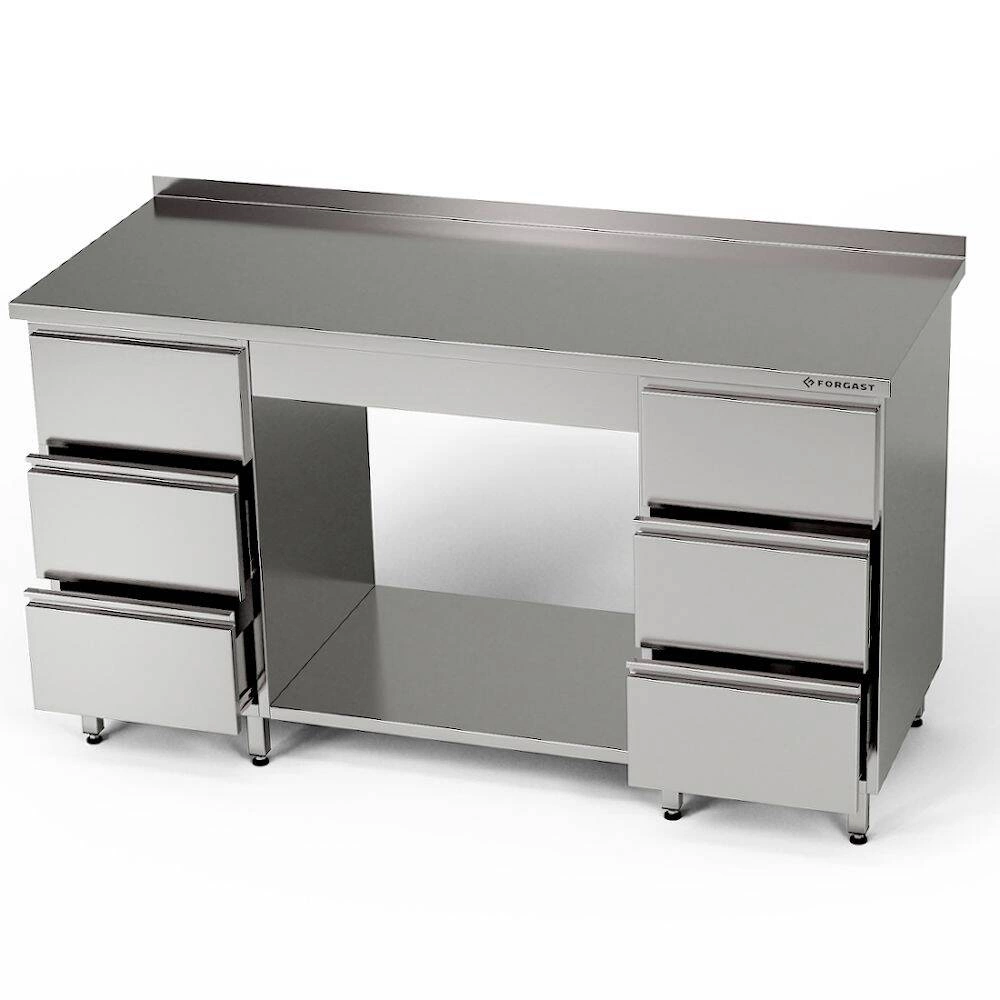 Pracovná stanica s rozmermi 160x60x85 cm s 2 blokmi po 3 zásuvky a pó³. Vyrobené z nehrdzavejúcej ocele J4.