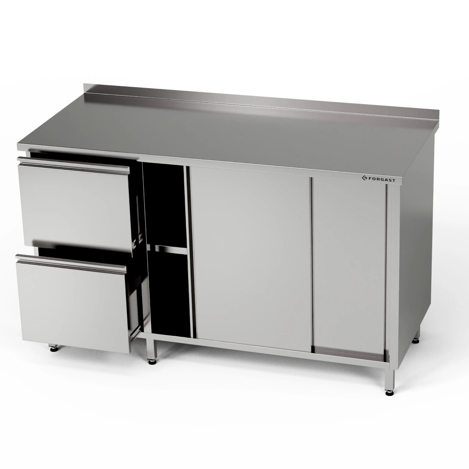 Pracovný stôl z nehrdzavejúcej ocele s blokom skriniek a zásuviek 160x70x85 cm | FORGAST