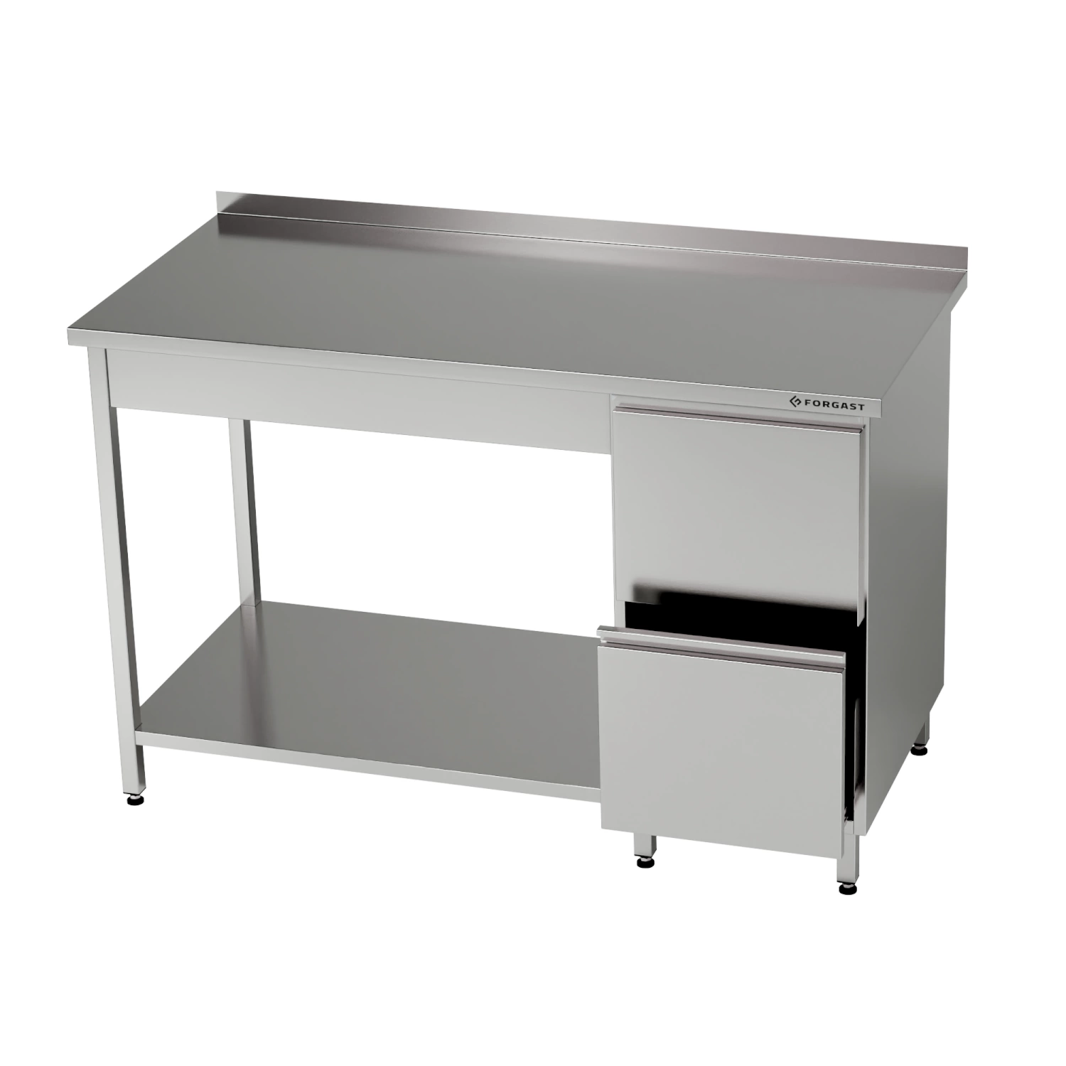 Pracovný stôl z nehrdzavejúcej ocele s blokom zásuviek a spodnou policou 160x60x85 cm | FORGAST