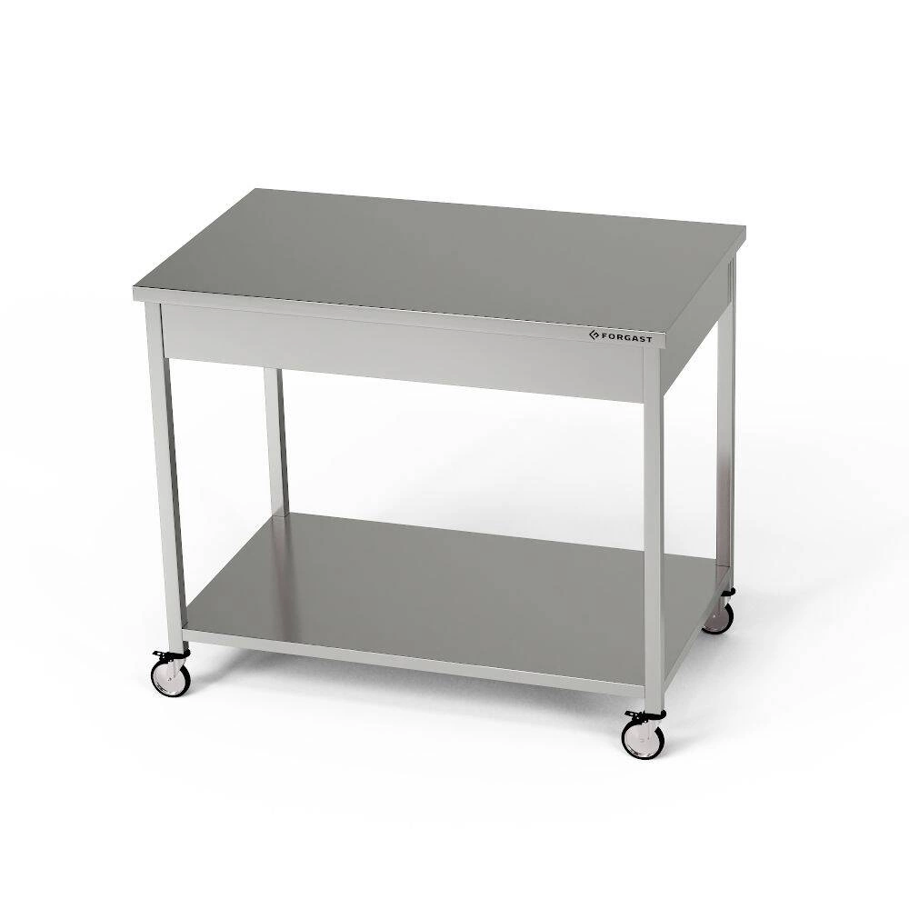 Mobilná pracovná stanicaStôl s rozmermi základnej dosky 90x70x85 cm je vyrobený z nehrdzavejúcej ocele J4. K stolu je pripevnená sada 4 brzdených cókov.