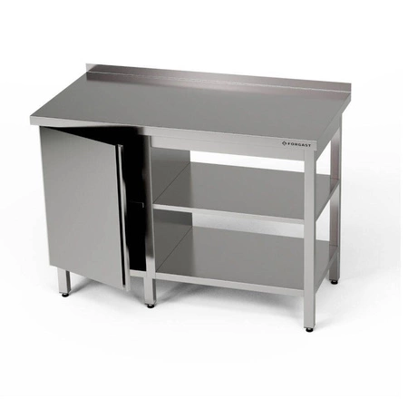 Pracovný stôl z nehrdzavejúcej ocele so skrinkou a dvoma policami 220x60x85 cm | FORGAST