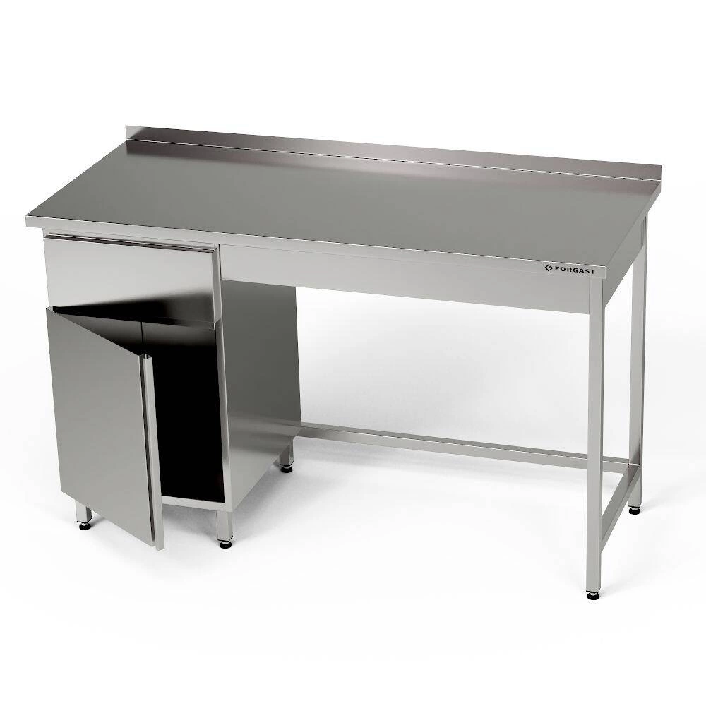 Pracovný stôl s rozmermi 170x60x85 cm so skrinkou s otváracími dvierkami a zásuvkou. Skriňa so zásuvkou dlhou 40 cm a širokou 60 cm (hlboká) umiestnená na ľavej strane. Vo vnútri skrinky je półka. Stół z nehrdzavejúcej ocele J4.