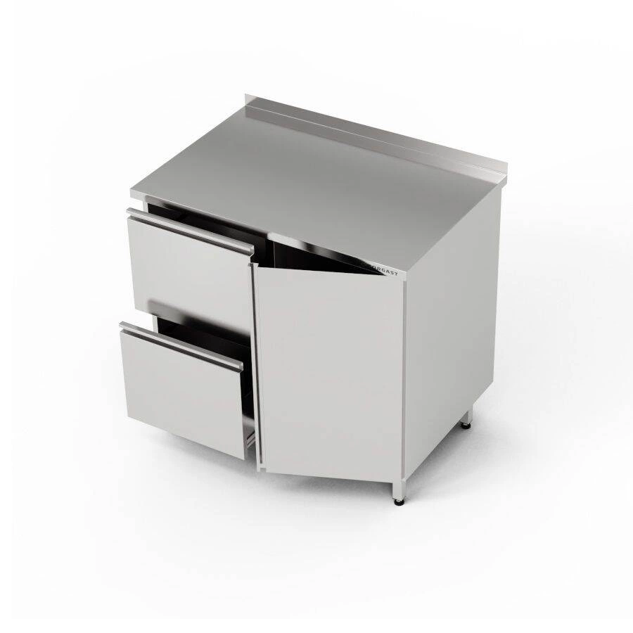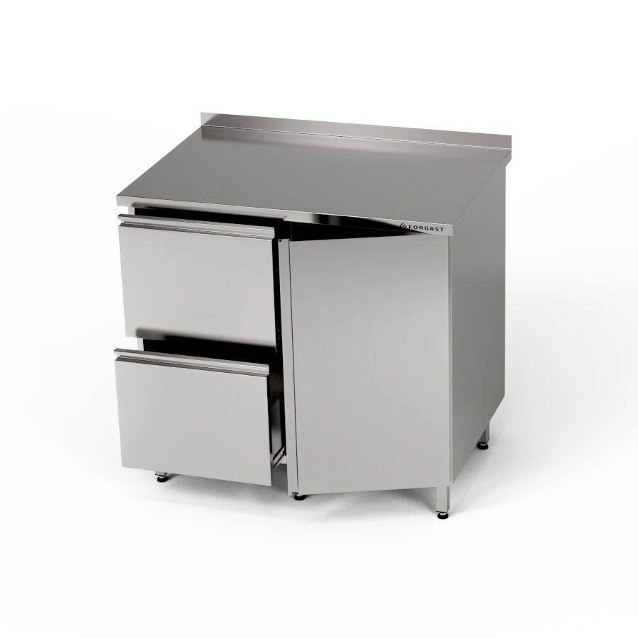 Pracovný stôl z nehrdzavejúcej ocele so skrinkou a zásuvkovým blokom 130x60x85 cm | FORGAST