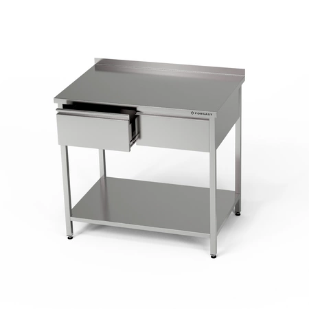 Pracovný stôl z nehrdzavejúcej ocele so zásuvkami a spodnou policou 100x60x85 cm | FORGAST