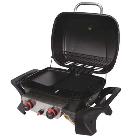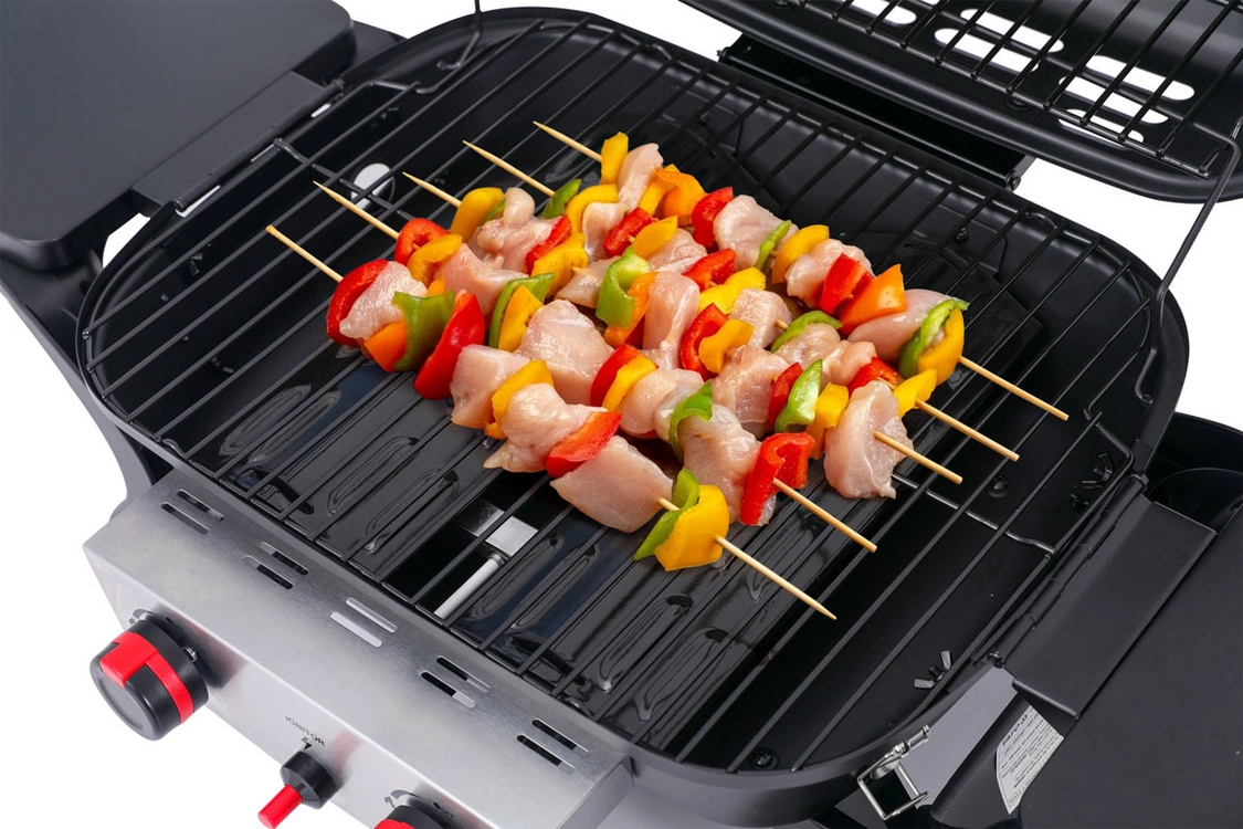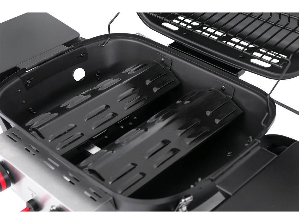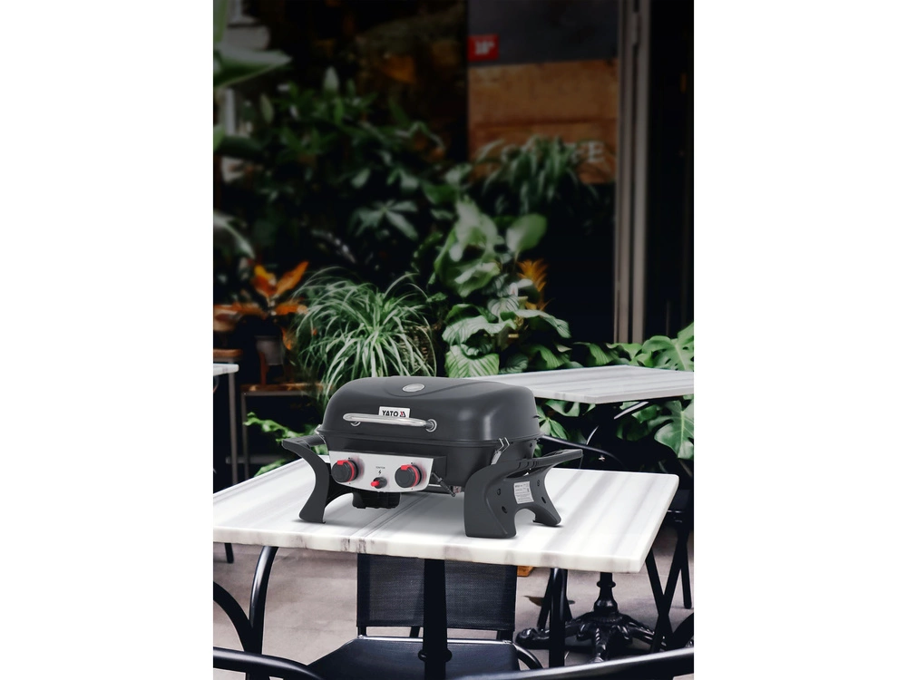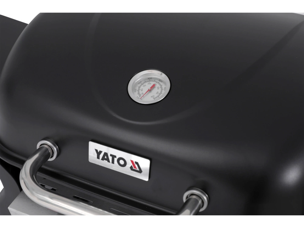 Prenosný plynový gril YAKE značky YATO s dvoma horákmi s celkovým výkonom 5 kW je ideálny na použitie v záhrade, na terase aj počas výletov. Je vybavený smaltovaným roštom s plochou 47x37 cm a smaltovanou ohrievacou mriežkou (40x13 cm). Sklopné bočné poličky, piezo zapaľovanie a vstavaný teplomer zaisťujú komfort a pohodlie pri používaní.