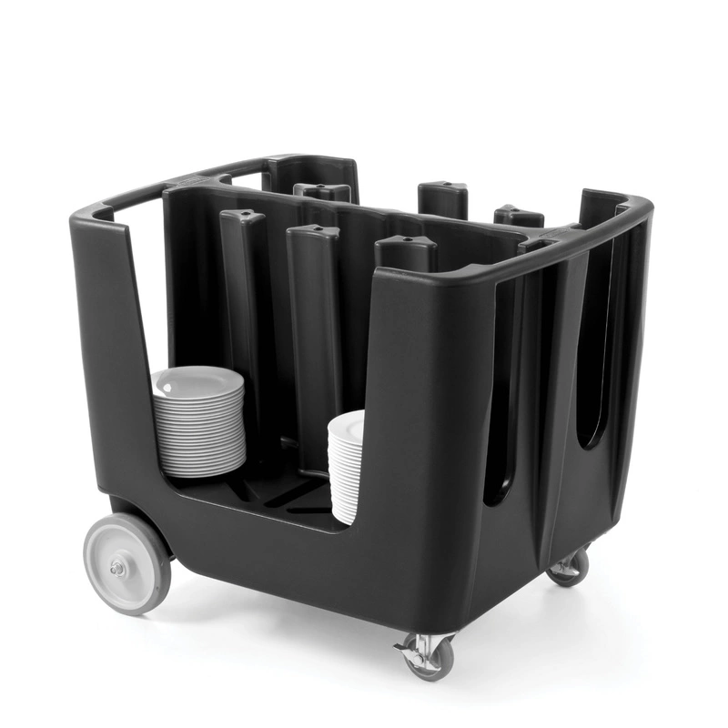 - Veľká kapacita: vozík môže prepravovať až 6 stohov tanierov, každý s kapacitou 50 kusov.
