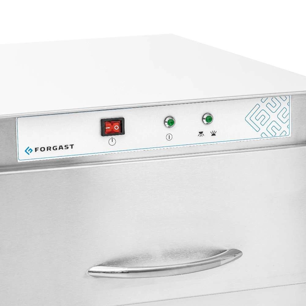 Zariadenie je vybavené praktickou zásuvkou, ktorá umožňuje jednoduché vkladanie a vyberanie vajec alebo kuchynských doplnkov. Nehrdzavejúca oceľ, z ktorej je vyrobený plášť aj vnútorné prvky, zaručuje odolnosť voči korózii a mechanickému poškodeniu a zároveň uľahčuje udržiavanie zariadenia v čistote. Vložka umožňujúca sterilizáciu nožov a iných nástrojov robí zo zásuvkového UV-C ožarovača FORGAST FG00530 ideálne zariadenie nielen pre prevádzky na spracovanie vajec, ale aj pre profesionálne kuchyne reštaurácií či pekární. V balení sa nachádza súprava UV-C lámp, vložka a návod na obsluhu.