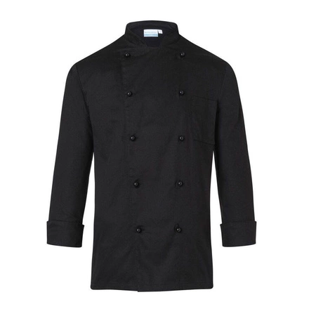 Rondon kuchársky čierny Karlowsky. Čierna farba, unisex. Vyrobené zo 100 % bavlny 185 g/m2. Mikina má pravidelný lem a manžety s rozparkom. Náprsné vrecko na ľavej strane. Dvojradová blúzka s 10 čiernymi gombíkmi. Možno prať v práčke a žehliť. Nesušte v sušičke ani nebielte. Dostupné veľkosti od XS do 4XL