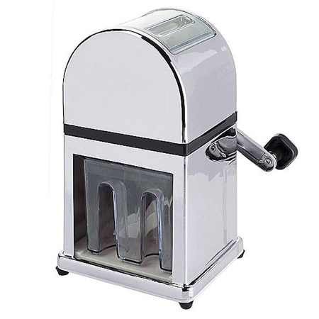 Ručný drvič ľadu je praktické zariadenie, ktoré sa uplatní ako v domácnosti, tak aj v bare či reštaurácii. Vďaka pevnej, chrómovanej konštrukcii a veľkej akrylovej nádobe na ľad s objemom 0,9 litra umožňuje rýchle a pohodlné drvenie kociek ľadu. Je ideálny na prípravu studených nápojov, koktailov a dezertov, kde je dôležitá správna konzistencia ľadu.