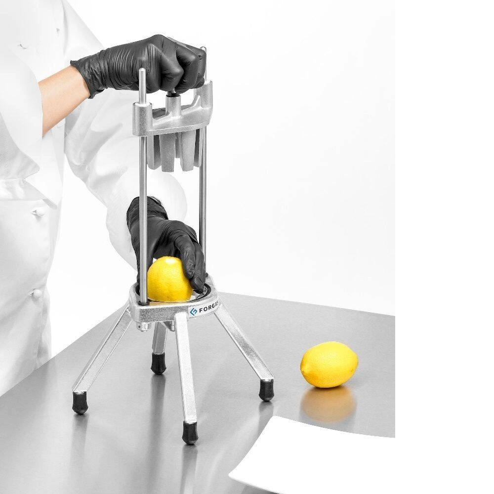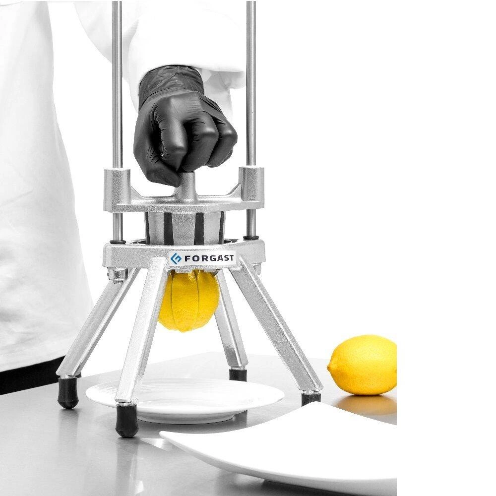 Ručný krájač na kúsky, 8 čepelí FORGAST FG10005 je profesionálne zariadenie určené na rýchle a presné krájanie zeleniny a ovocia na rovnaké časti. Vyznačuje sa pevnou konštrukciou z hliníka, vybavením ôsmimi mimoriadne ostrými čepeľami a jednoduchou obsluhou v akýchkoľvek podmienkach. Ideálny pre gastronomické prevádzky – reštaurácie, bary, bistrá, food trucky či cateringové firmy.