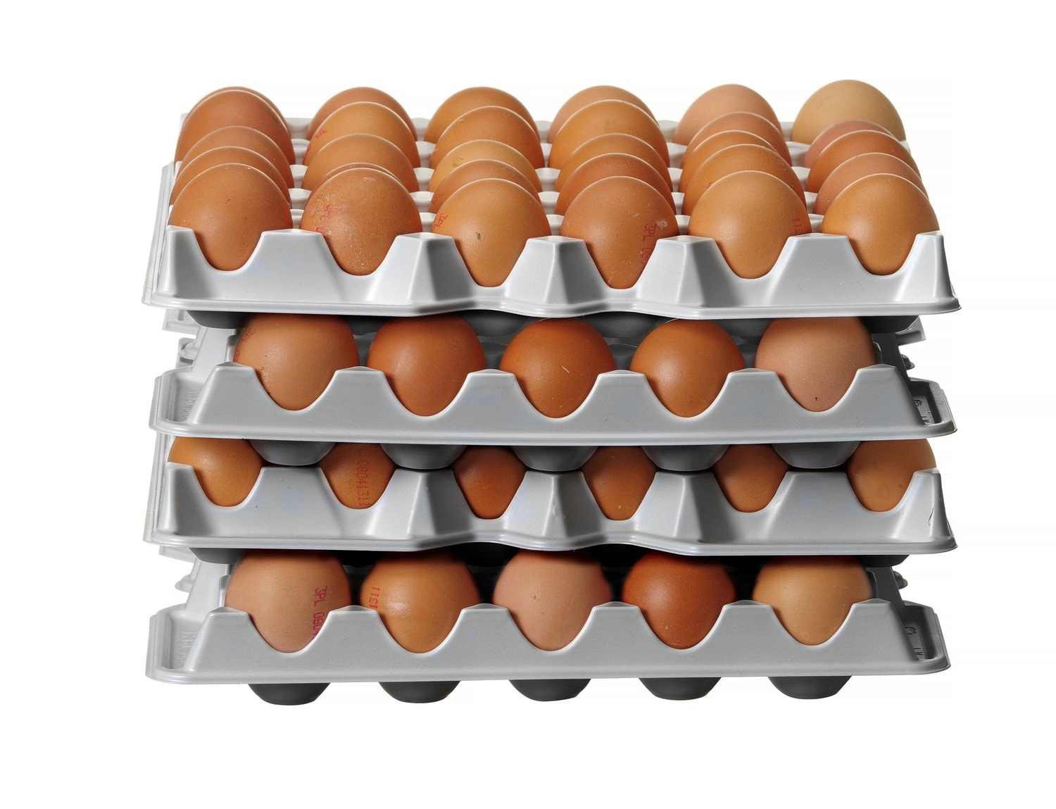 Podnosy sú vyrobené z pevného PET materiálu, vďaka čomu sú veľmi odolné. Každé z nich pojme 30 vajec a je možné ich skladať na seba.
