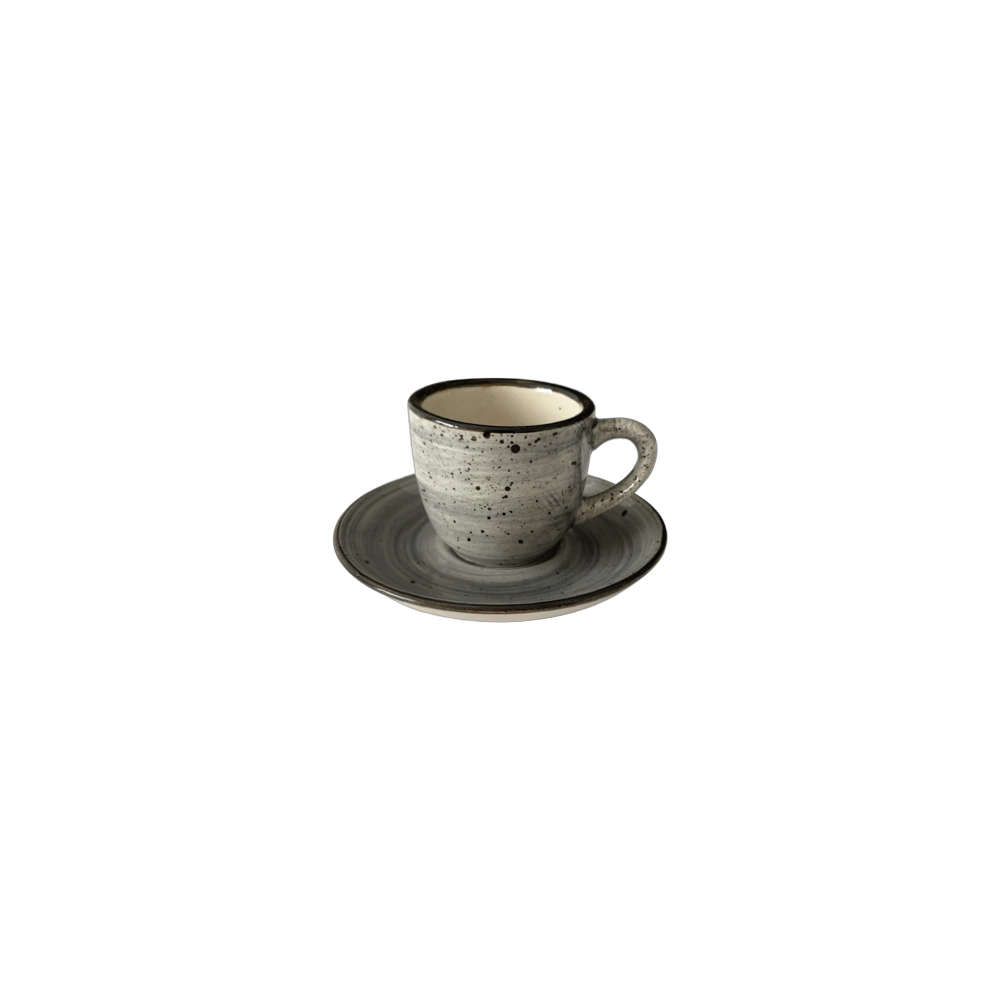 Šálka Bel 100 ml s tanierikom 11 cm Still Rustic sivá | KERA CERAMIKA 2.3.3.RUSTIC SIVÁ