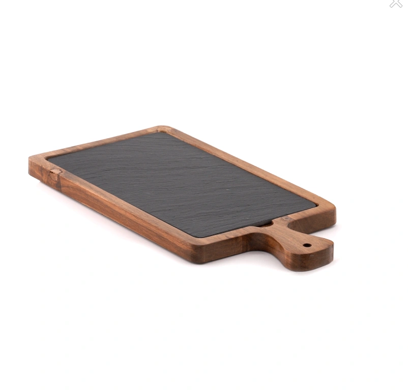 Doska je vyrobená z lakovaného akáciového dreva, ktoré zaisťuje trvácnosť a odolnosť voči vlhkosti. Vrchná doska z prírodnej bridlice umožňuje priamy kontakt s jedlom, nepohlcuje pachy a ľahko sa čistí. Pohodlná rukoväť umožňuje pevné držanie a komfortné podávanie.