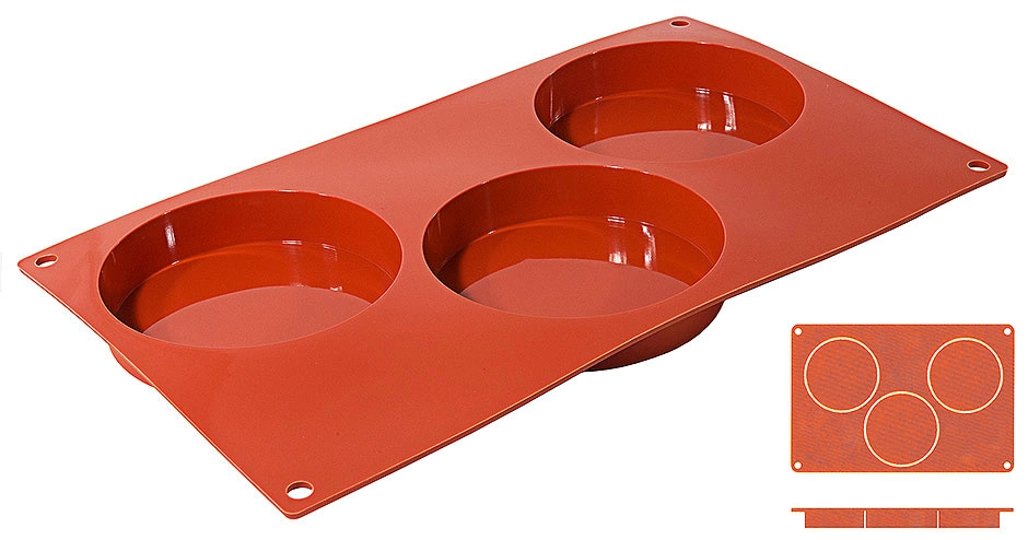 Popis Silikónová forma na sušienky, nepriľnavý povrch, 3 otvory, okrúhle 10x2 cm CONTACTO 6641/100