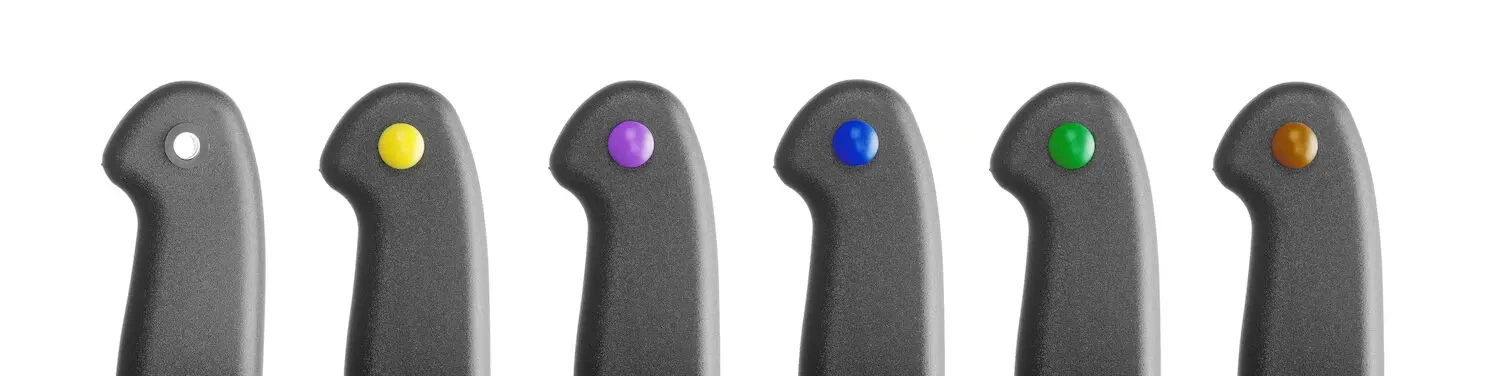 - Farebné klipy sú súčasťou dodávky, aby bolo možné označiť vrúbkovanie podľa pravidiel HACCP (klipy sa po namontovaní nedajú odstrániť)