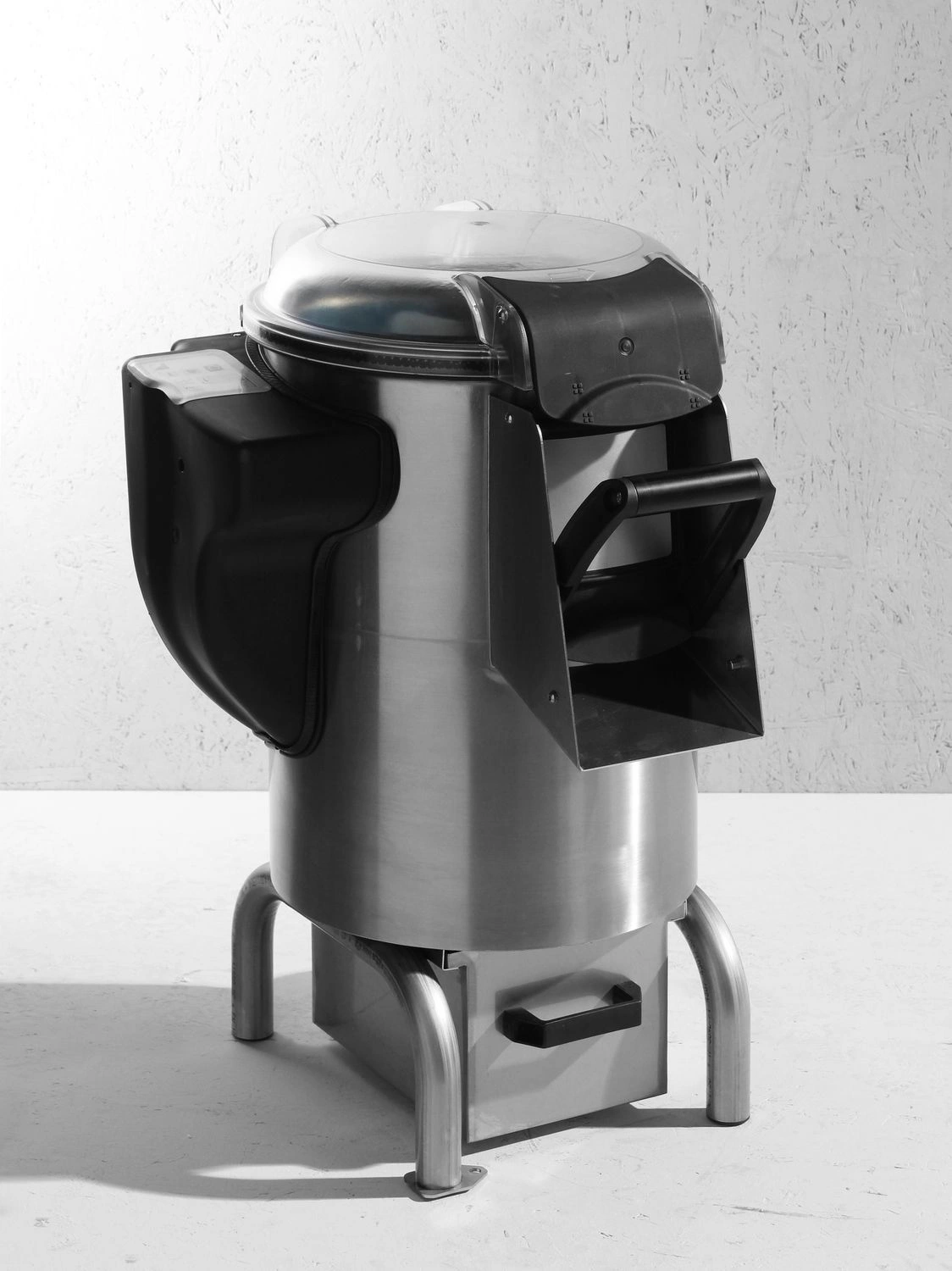 Škrabka na zemiakyów so separátorom z nehrdzavejúcej ocele. Jednorazové zaťaženie - 10,5 kg.Brúsny kotúč a steny vyložené vyberateľnou brúsnou vložkou. Priehľadné polykarbonátové veko. Digitálny časovač.