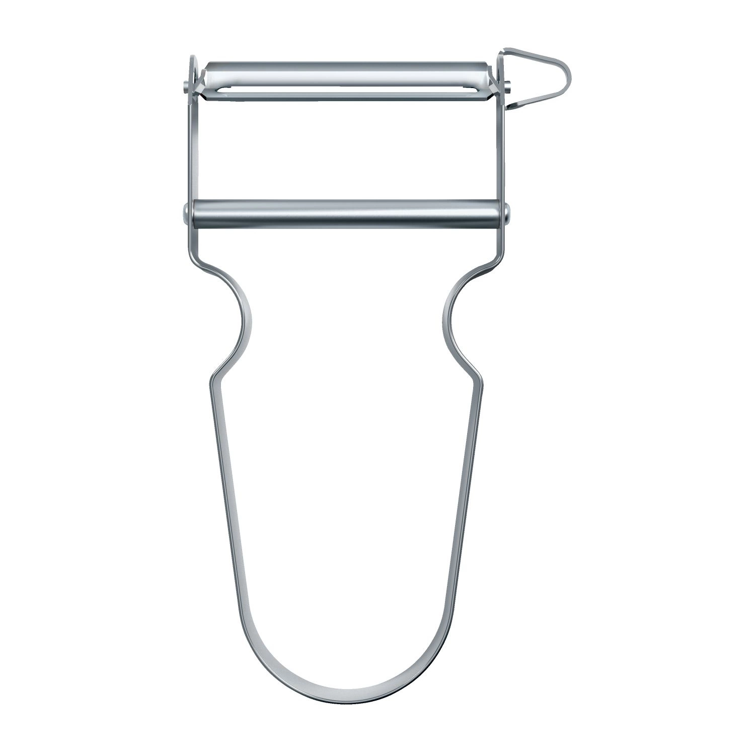 STAR škrabka s hladkou čepeľou od spoločnosti VictorinoxŠkrabka je celá vyrobená z kvalitnej nehrdzavejúcej ocele. Škrabka má pohyblivú, mimoriadne účinnú čepeľ, ktorá šupku olúpe veľmi tenko, čím sa zachovajú všetky vitamíny obsiahnuté na povrchu zeleniny a ovocia. Škrabka je dlhá 11 cm a široká 6,5 cm. Škrabku nie je možné umývať v umývačke riadu.
