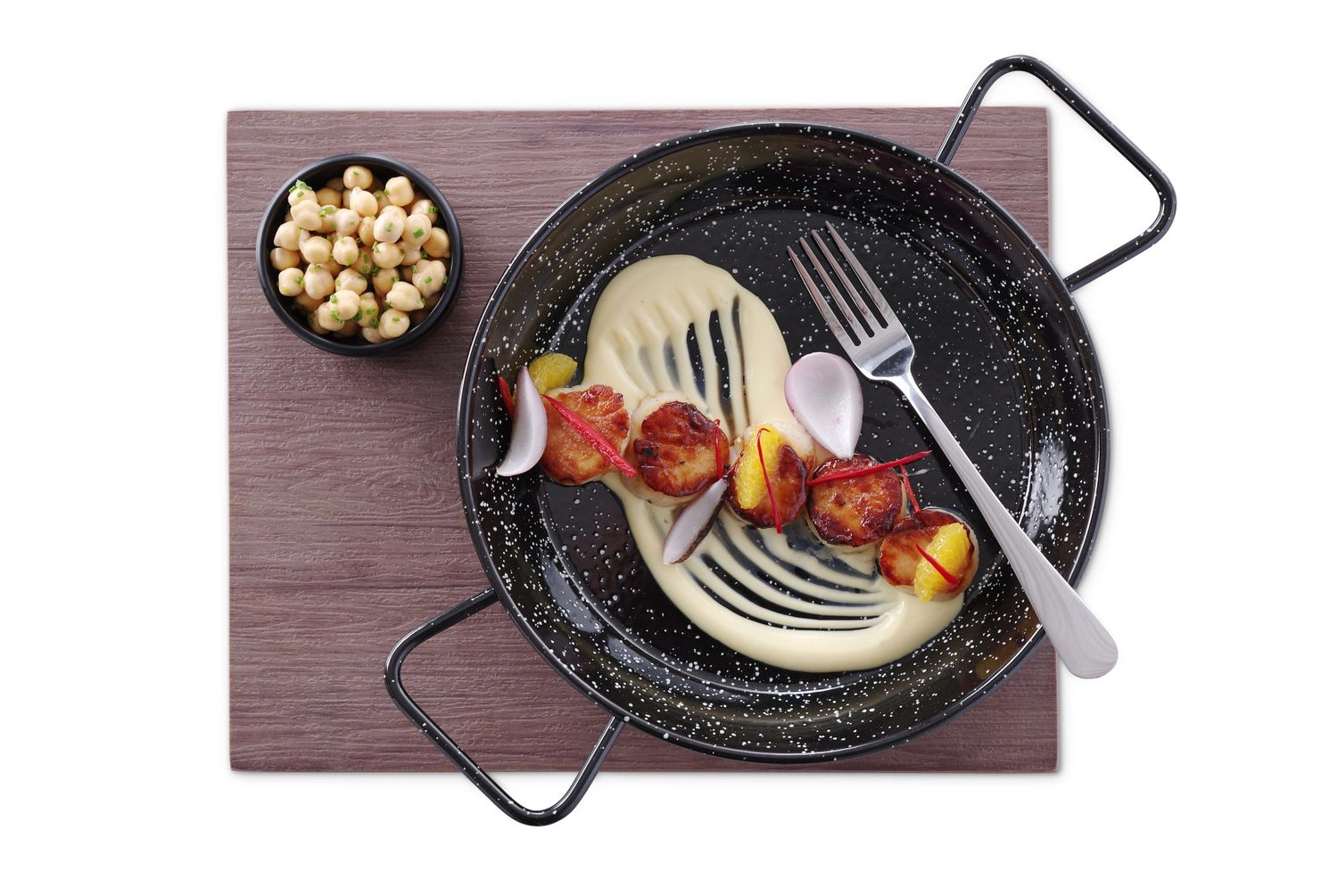 Panvica na paellu s priemerom 24 cm z nehrdzavejúcej ocele so smaltovaným povrchom. Dve praktické rukoväte.